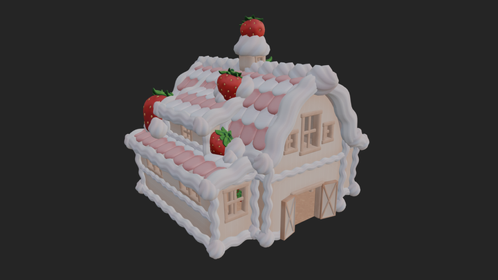 Buildings and objects that I modeled for my food-themed game concept, Chompians! The location for these buildings are the "strawberry cake fields," so I designed them after strawberry shortcake. I modeled these in Blender and textured them in Substance Painter.